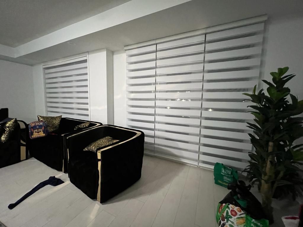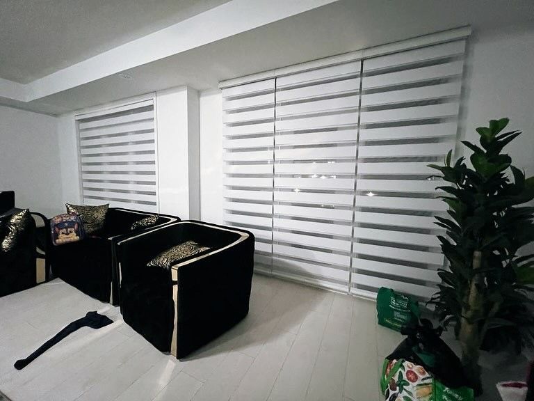 Zebra Blinds are modern and functional, combining alternating sheer and solid fabric stripes that let you easily control light and privacy. With a simple adjustment, you can enjoy filtered sunlight or complete coverage, making them a perfect blend of style and practicality for any room.